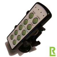 A robust hand control unit for Radio communication with up to 5 units is available. The hand control has internal battery and is charged via Micro USB-Port.
